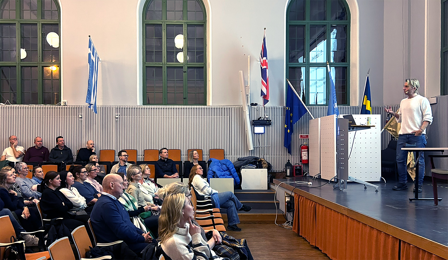 Cirka 200 lärare från kommunens olika skolor, inbjudna som en del av det samarbete mellan fristående och kommunala huvudmän som kallas BAS, Bildningsakademin i Strängnäs.