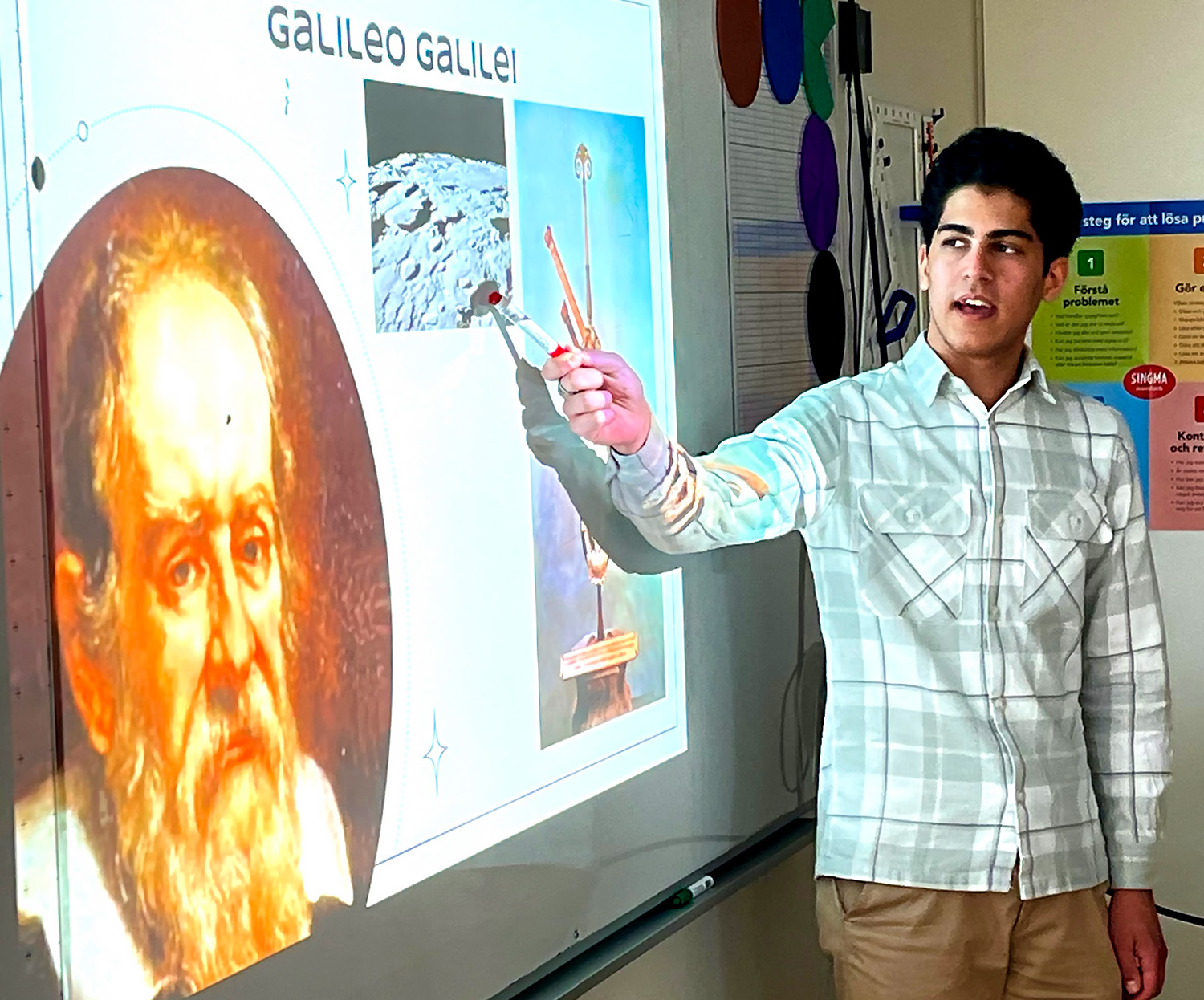 Omar Wehbeh läser första året på spetsprogrammet i matematik på Berzeliusskolan i Linköping. I slutet av maj höll han tre föreläsningar för elever på Europaskolan Rogges spetsprogram.