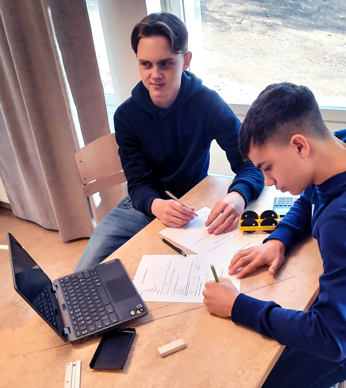 Sigrid och Gabriele använder fler hjälpmedel för att tillsammans klura ut svaret.