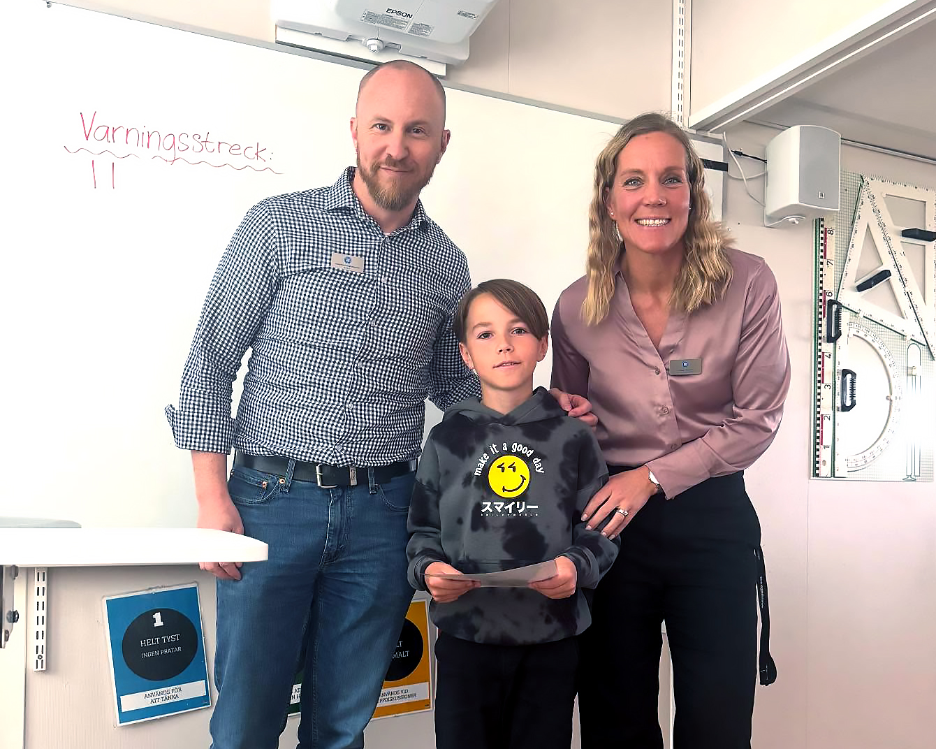 ”Du sprider en positiv stämning bland klasskamrater, både i och utanför klassrummet. Någon som möter dig på skolgården möts alltid av ett leende. På fotbollsplanen visar du laganda, vilket du också tar med in i klassrummet där du har ett hjälpsamt sätt mot klasskamrater. I klassrummet visar du ett engagemang till att vilja lära dig mer. Tack för all positivitet du sprider, fortsätt med det.”