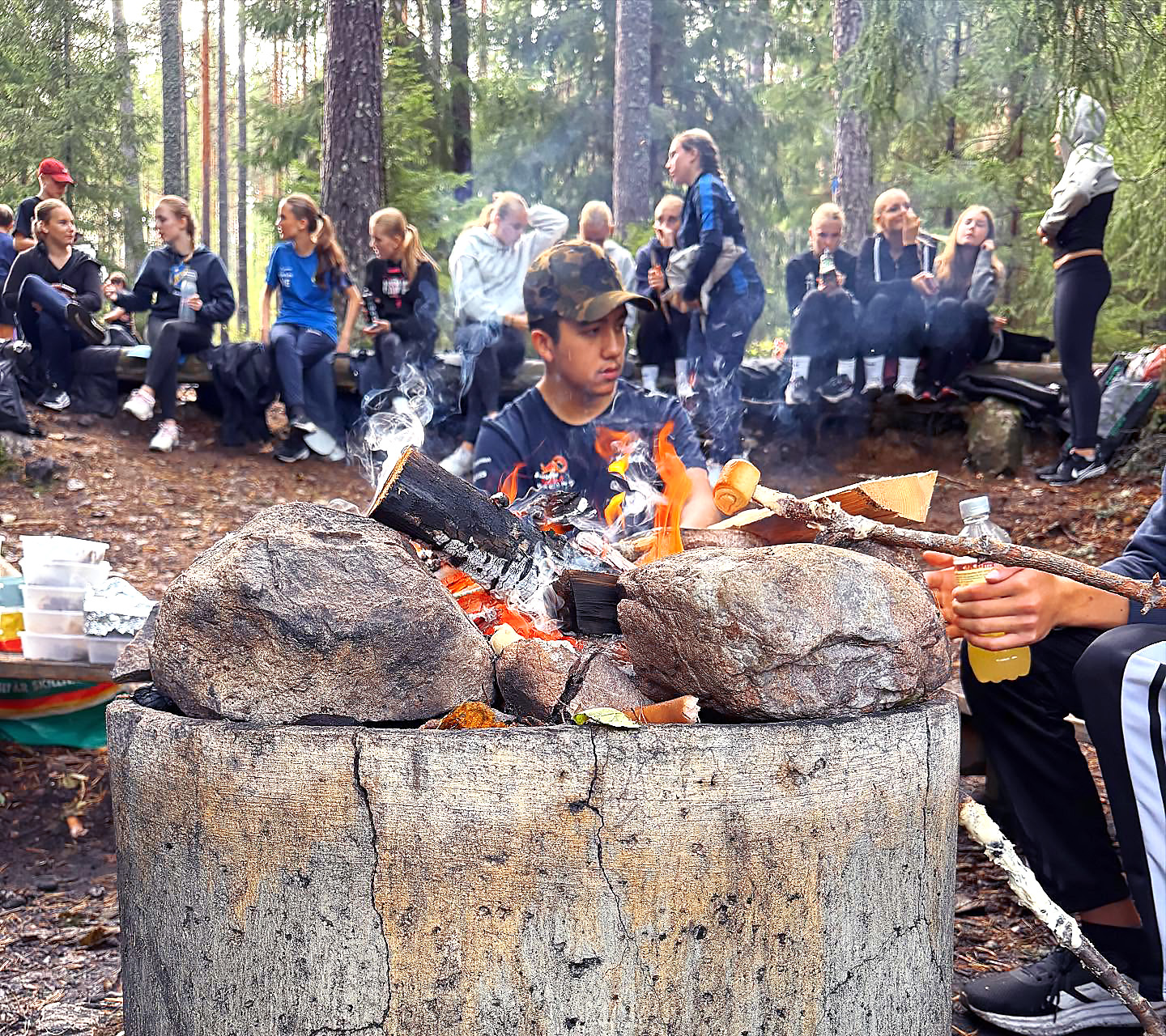 Korvgrillning över öppen eld värmde och hembakade pinnbröd och proteinbars blev succé. Detta är ett av flera exempel där våra lärare samarbetar ämnesövergripande genom att kombinera olika färdigheter, i detta fall idrott och hemkunskap.
