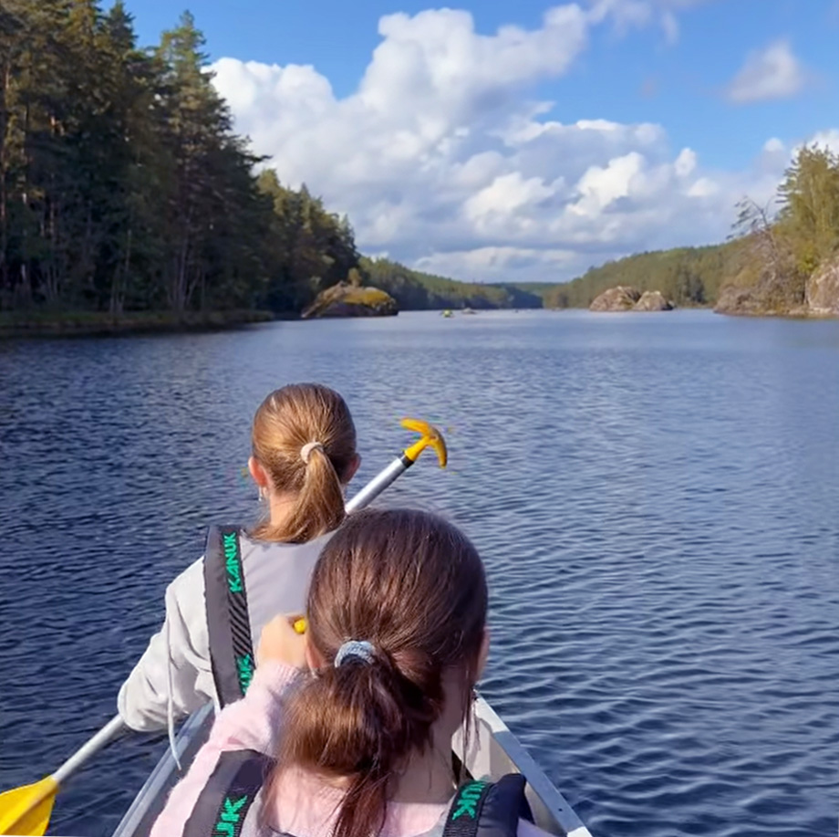 Den svenska allemansrätten, som innebär att alla kan röra sig fritt i naturen om vi visar hänsyn och inte förstör, är unik. Eleverna kunde välja mellan att ta sig fram till fots eller i kanoter och fick njuta av de natursköna vyer som den sörmländska skogen och sjöarna erbjuder.