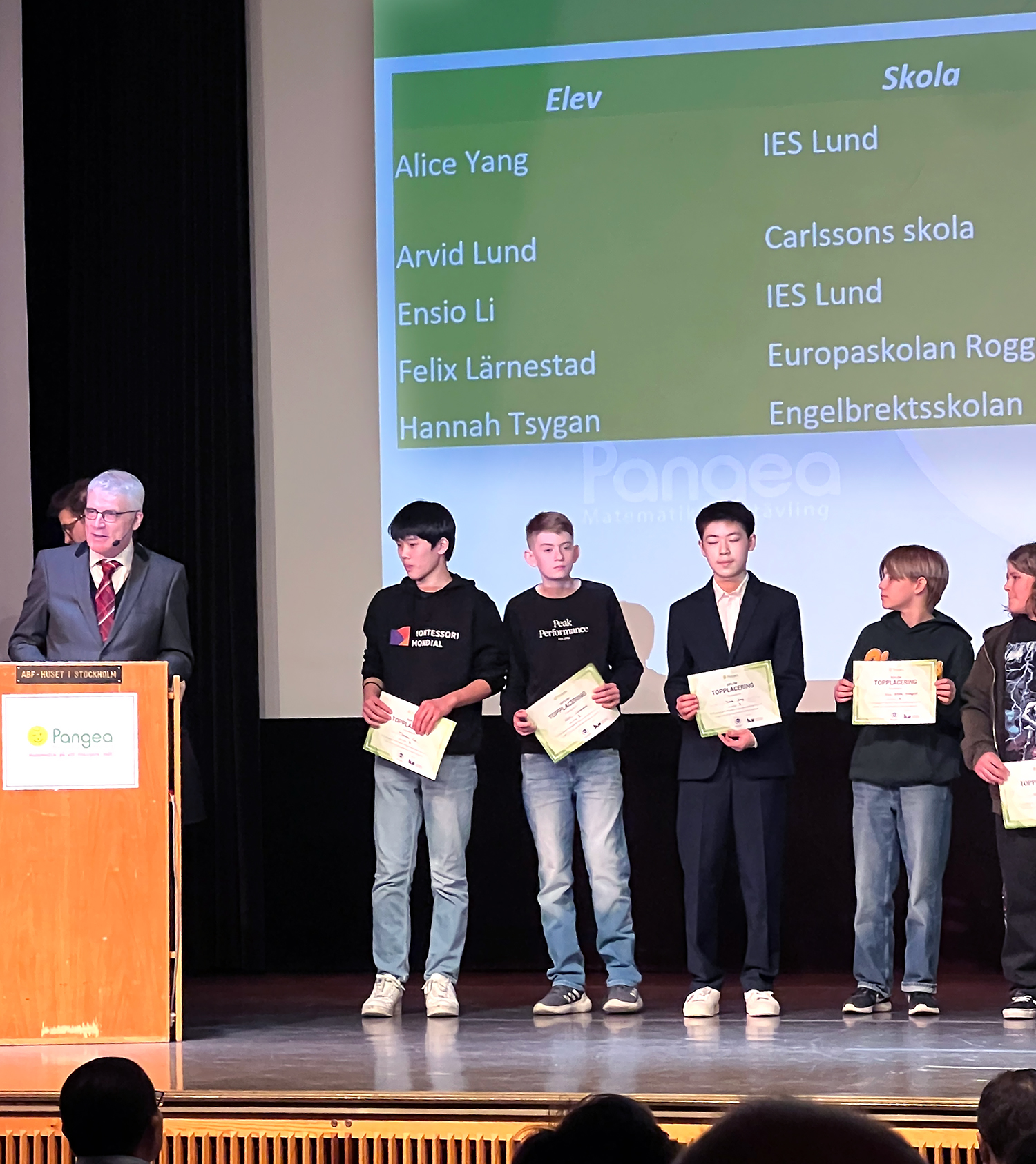 Felix Lärnestad lyckades allra bäst av Europaskolan Rogges finalister i Pangeas matematiktävling. Han kom topp tio totalt och fick ta emot diplom och gratulationer på scenen under prisutdelningsceremonin i mitten av mars.