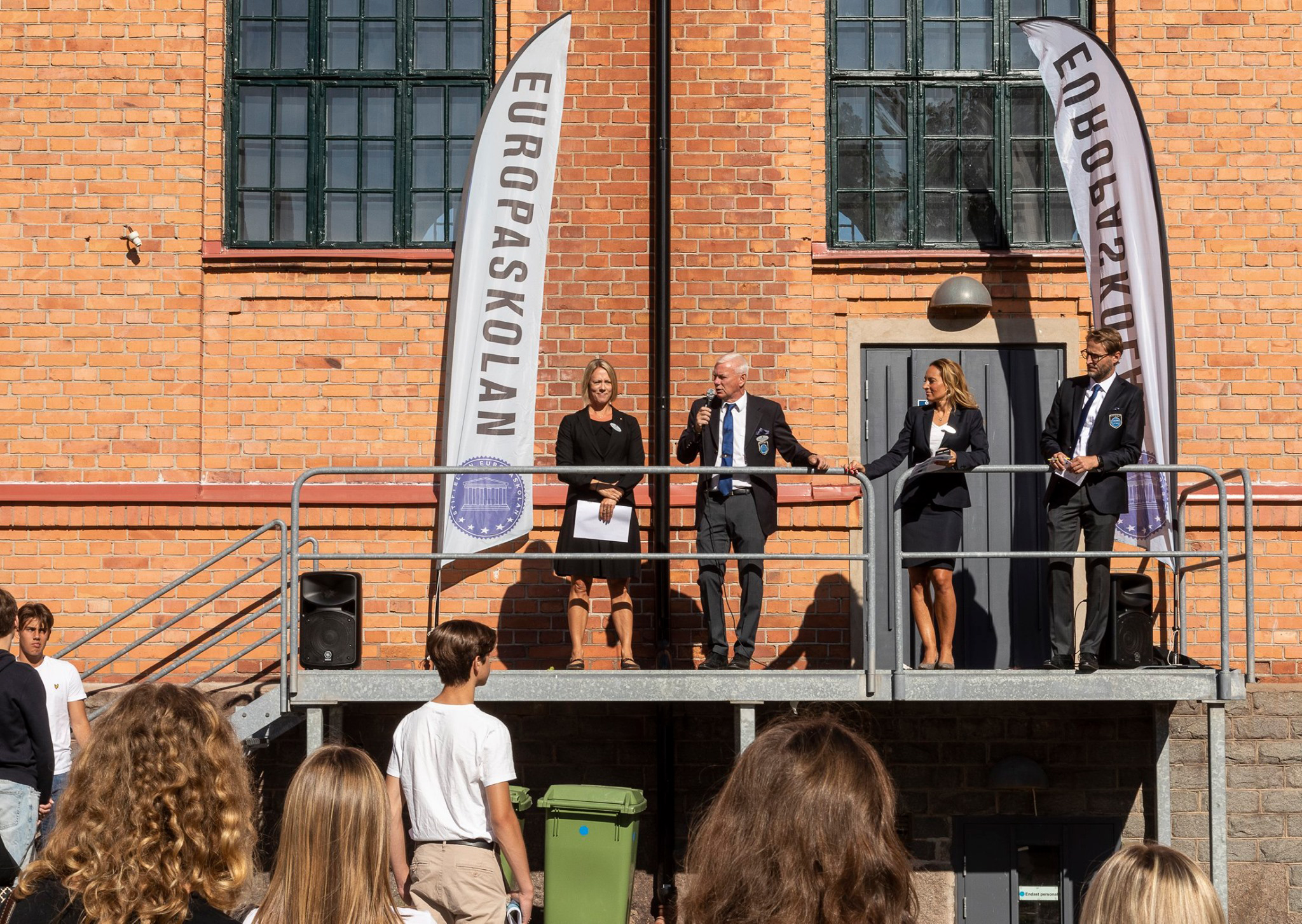 Klockan 09.30 kom skolledningen ut, och rektor Thomas Axelsson hälsade alla välkomna. Han presenterade också skolans biträdande rektorer: Martina Gustavsson, Olympia Berterud och Marcus Lindvall.