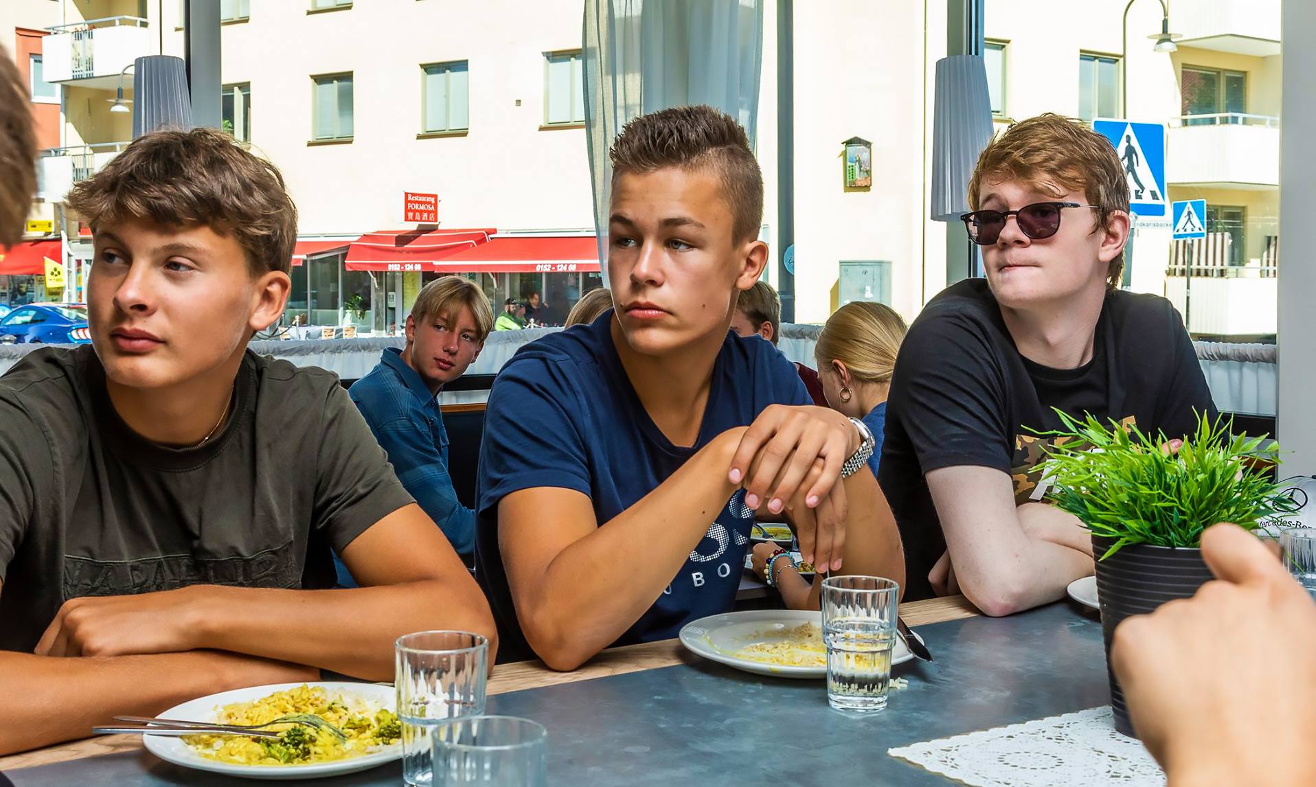 För den delikata maten står skolans egna kockar, som tillagar allt från grunden på restaurangnivå med fokus på hållbarhet. Det var helt klart mätta och belåtna elever som strosade ner mot Ångbåtsbron under lunchrasten, före eftermiddagens fortsatta program.