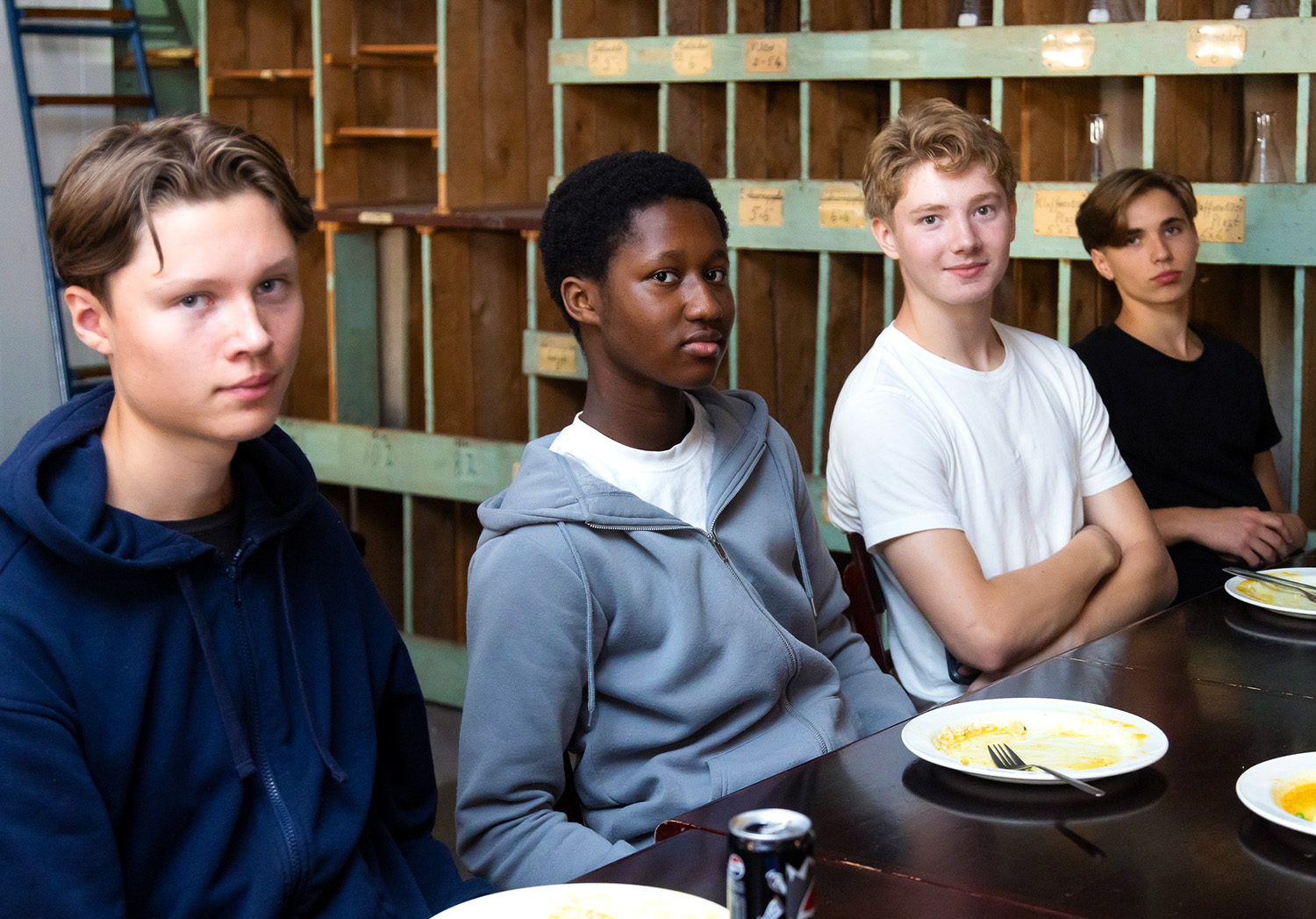 Därefter delades eleverna upp i sina nya klasser och följde med mentorerna till klassrummen. Under dagen fick de möjlighet att lära känna varandra genom olika aktiviteter och fick ännu mer information om skolan. De åt också terminens första lunch och fick bekanta sig med skolans matsal som ligger i den tidigare järnhandeln. Där serverades det hemlagad och delikat mat. Flera passade också på att besöka Ångbåtsbron, där det utöver fika med mera också erbjuds frukost varje morgon i skolans café.