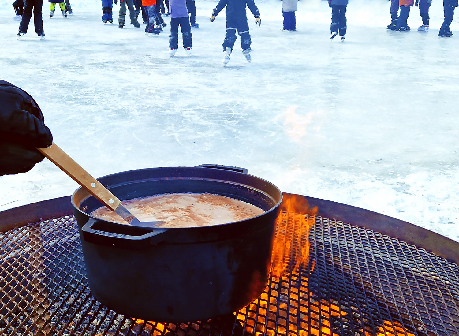 I bitande kyla är det extra gott med lite varm soppa under skridskoåkningen.
